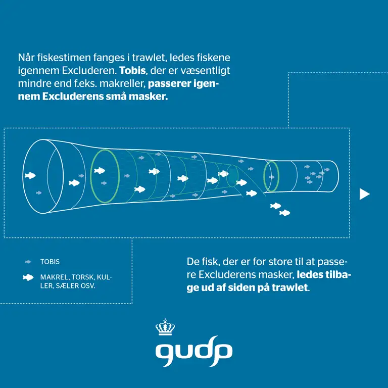 Ekskluderen er en form for sorteringsrist, som kun tillader små fisk at slippe igennem, og tobis er væsentligt mindre end makrel. Et tidligere GUDP-projekt har allerede udviklet en lignende ekskluder til fiskeri af sperling, men det nye projekt skal videreudvikle og tilpasse materialevalg og design, så det passer til tobis.