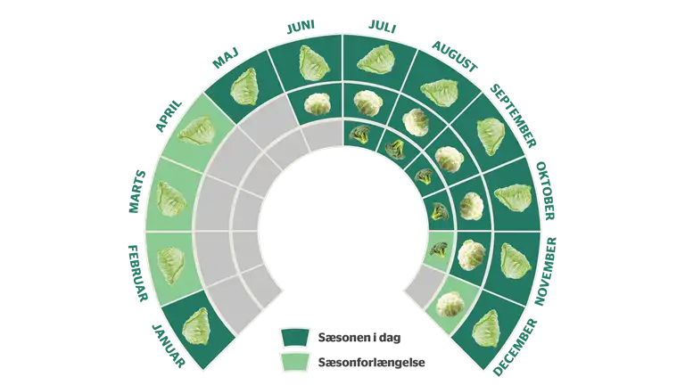 ”Spidskål høstes fra juni til oktober/november. Indtil nu har producenterne været i stand til at opbevare kålen indtil omkring januar måned, men hvis vi kan forlænge sæsonen yderligere, kan det betyde, at Danmark kan blive mere selvforsynende med spidskål.”